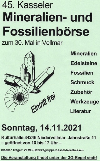 Bereits zum 45. Mal veranstaltet die VFMG-Bezirksgruppe Kassel ihre Mineralien- und Fossilienbörse.
