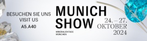 Mit rund 1.000 Ausstellern sind Mineralientage München einer der wichtigsten Treffpunkte für Mineralien- und Fossiliensammler in Deutschland. Mineralien, Fossilien, Edelsteine und Rohsteine werden in mehr als 4 Messehallen angeboten.