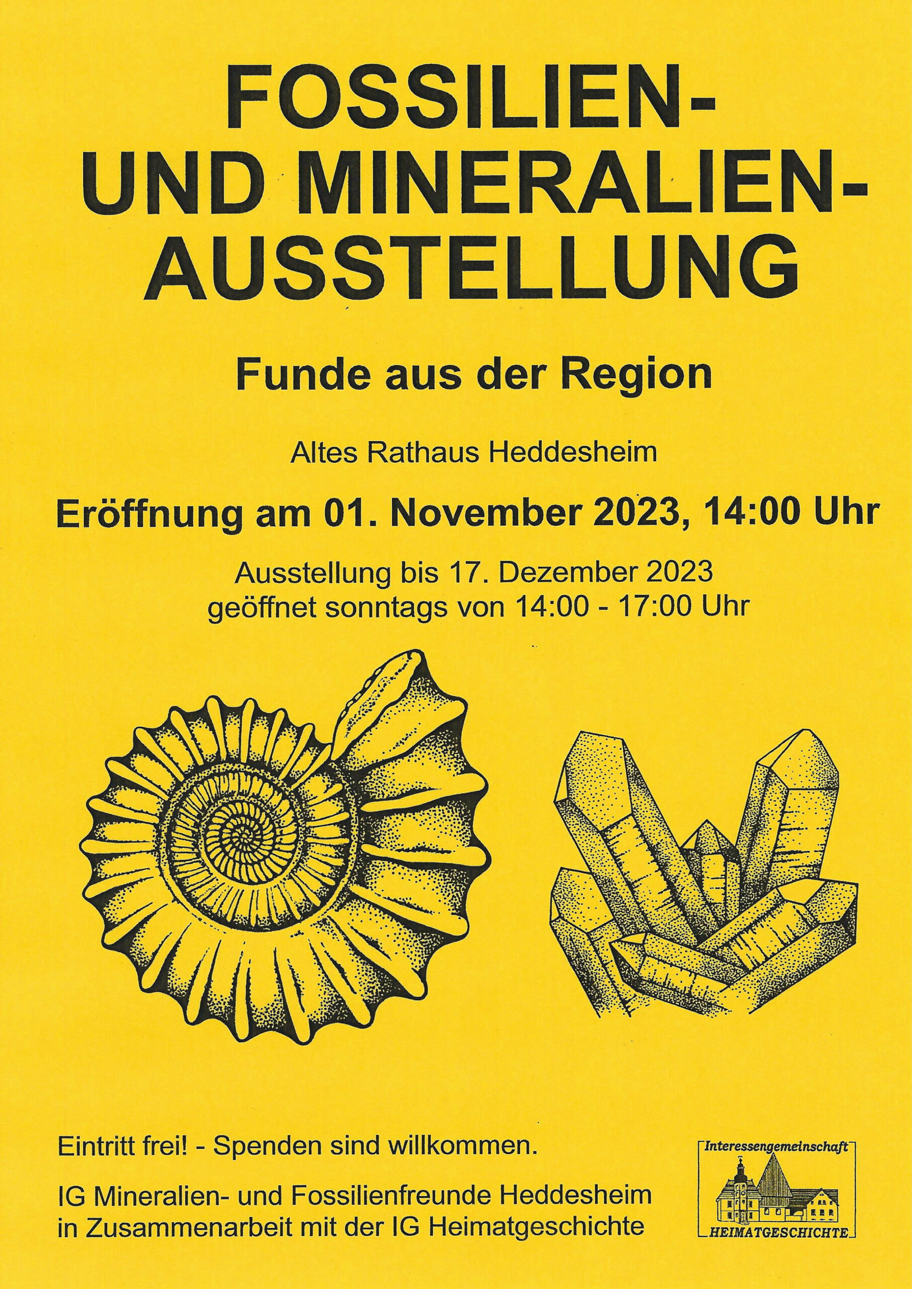 Aus Anlass unseres 30jährigen Bestehens veranstalten wir im Alten Rathaus in Heddesheim (Unterdorfstraße 2) eine Mineralien- und Fossilienausstellung.
